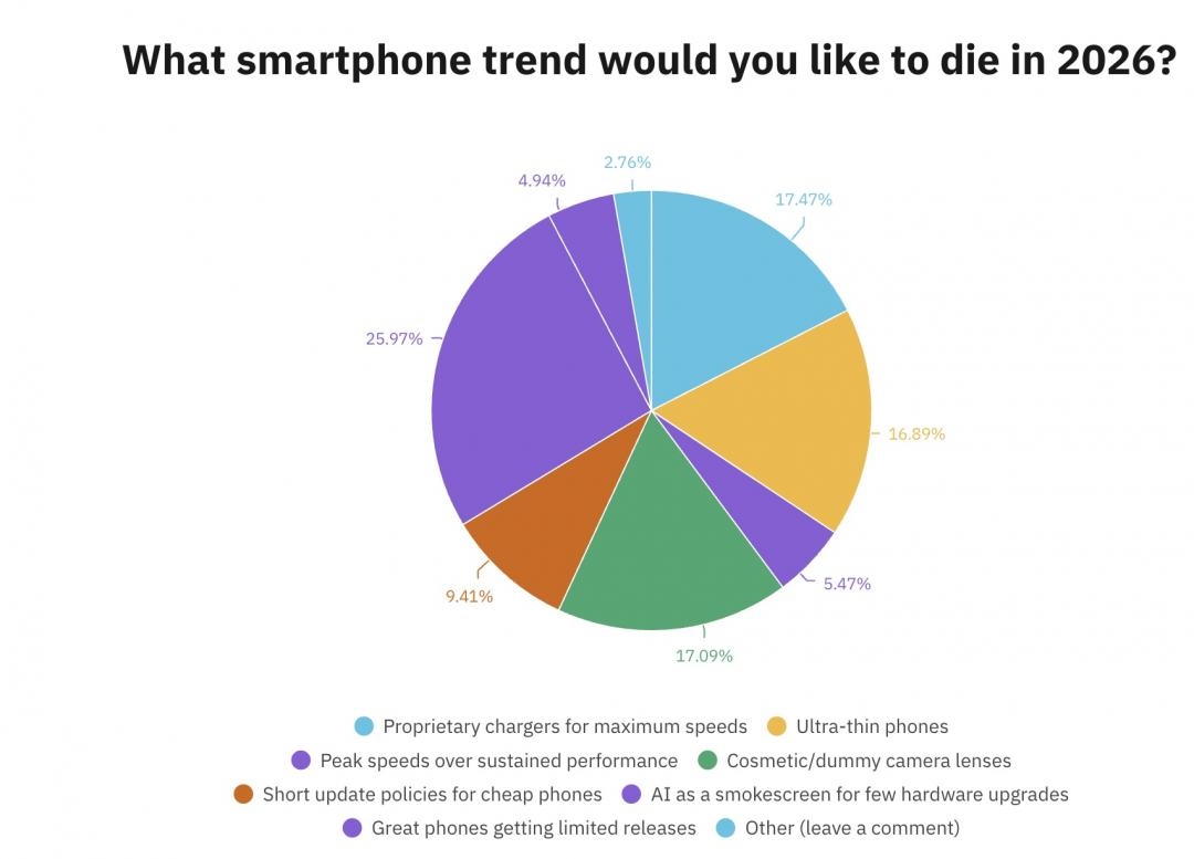 智能手机功能年年进化,但并非所有新趋势都能赢得消费者的掌声。近日,知名科技媒体Android Authority发起了一项名为“你最希望在2026年消失的手机趋势”的网络调查,已有近4500名网友参与,调查结果揭露了用户心中最真实、也最厌恶的行业现状。