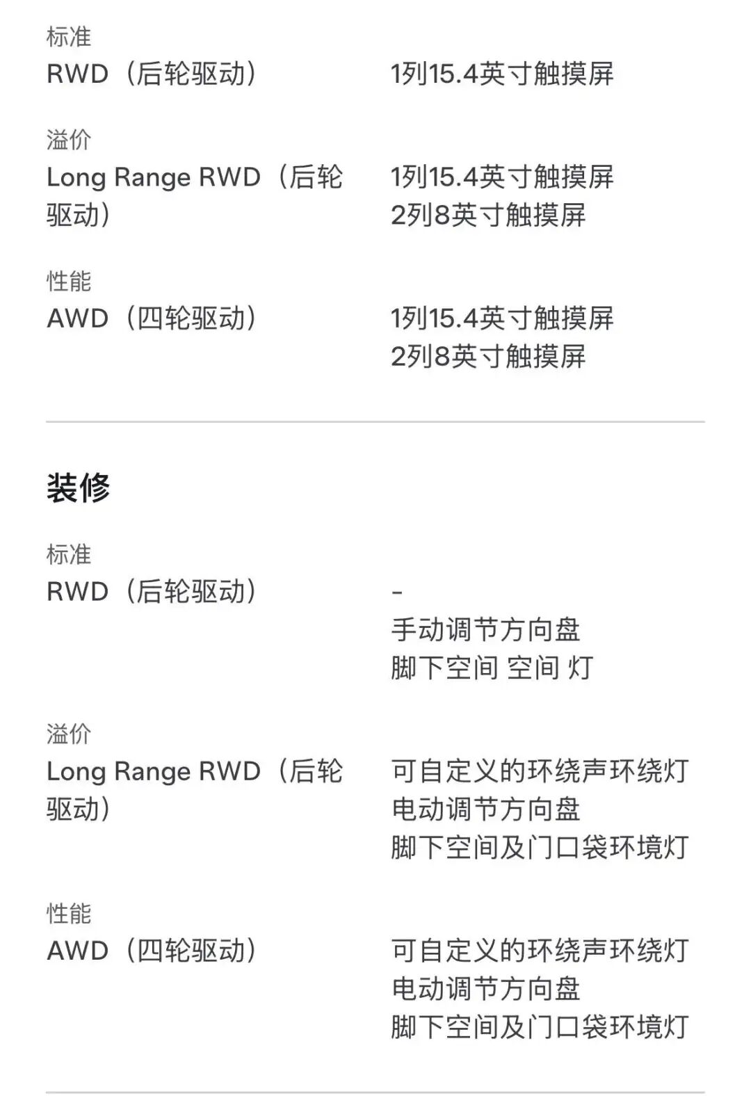 阉割的配置的确不少,但架不住价格香,从各个地区上市的标准版Model 3配置上,不难推测出接下来中国市场的标准版Model 3配置大体是一个什么样的水平。