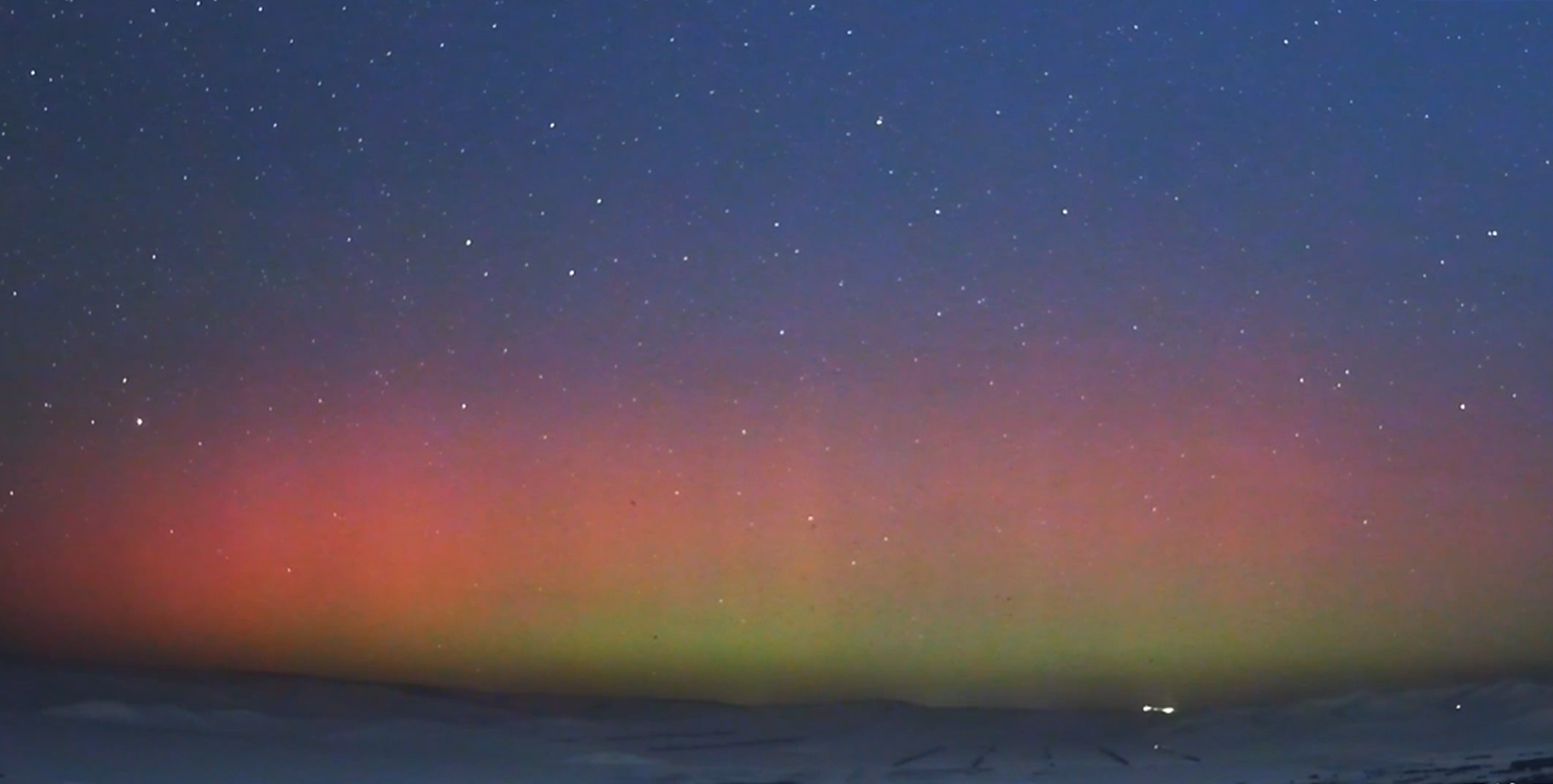 据央视新闻报道,今日凌晨,黑龙江漠河北极村的夜空中绽放出本年度最强烈的极光景观。目击者拍摄的画面显示,整片天空被绚丽的粉紫色光芒笼罩,肉眼可直接观测到极光如绸缎般舞动的奇观。