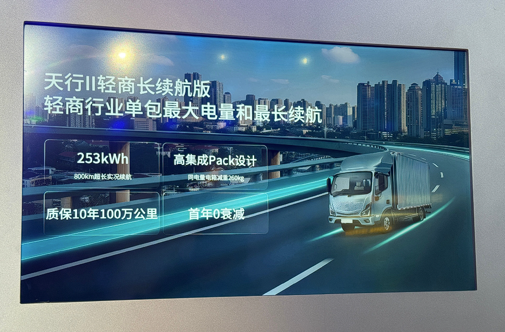 创下轻商行业单包253kWh的最大电量纪录,同时实现800km的最长续航,核心适配城际干线的长途物流场景。