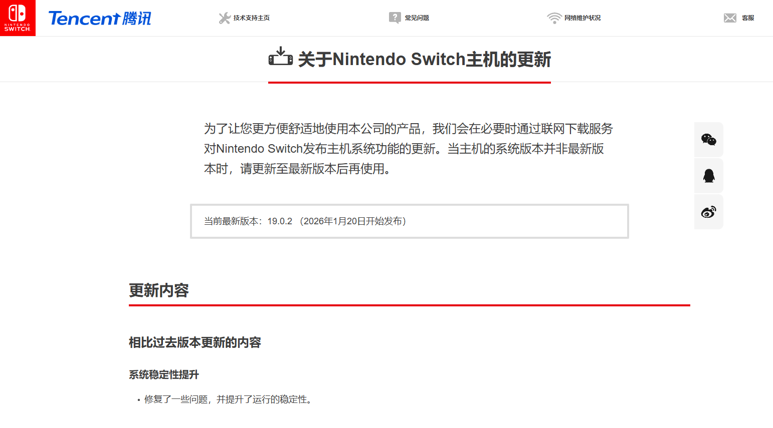 进入2026年,意味着腾讯代理的任天堂国行Switch正式进入生命倒计时。令人意外的是,在停服临近之际,国行Switch竟然还迎来了一次系统更新。国行Switch官网显示,日前官方推送了19.0.2系统更新。