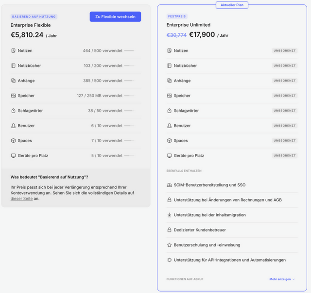 Enterprise企业订阅分为“灵活版(Flexible)”和“无限版(Unlimited)”两种方案,其中灵活版的年订阅费为5810欧元(约47508元人民币),而无限版则高达17900欧元(约14.6万元人民币)。