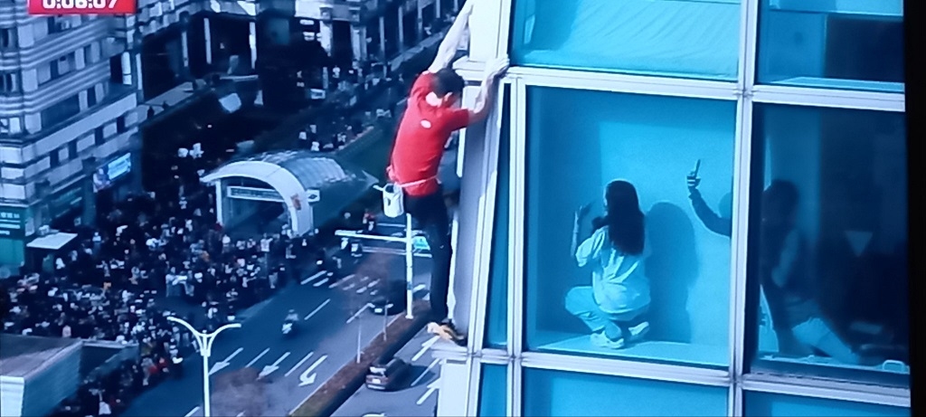 年届不惑的亚历克斯成为首位无保护攀爬101大楼并登顶成功的传奇人物,提升508米用时1小时31分35秒。