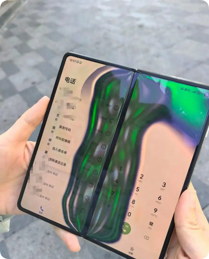 近期多位网友在社交平台吐槽,携带折叠屏手机前往东北后,屏幕出现冻损问题。从网友发布的图片来看,这类手机单屏显示大多正常,但一经展开,屏幕便出现大面积 “极光色” 故障;
