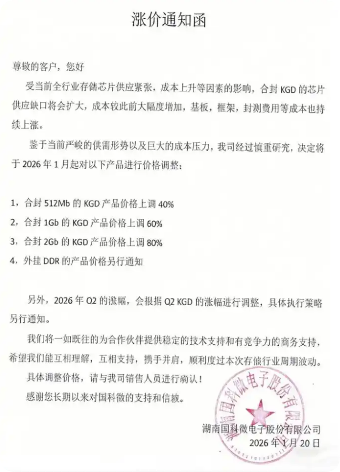 在此之前,国科微也已向客户下发涨价通知。