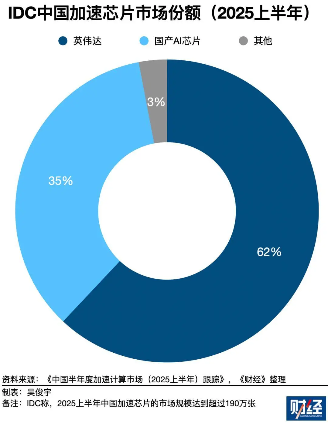 国际市场调研机构IDC 2025年10月数据显示,2025年上半年中国加速(即AI芯片)服务器市场规模达到160亿美元,出货超过190万张。其中英伟达约占62%市场份额,国产AI芯片约占35%市场份额。国产AI芯片需求持续增长,增长速度远超英伟达。