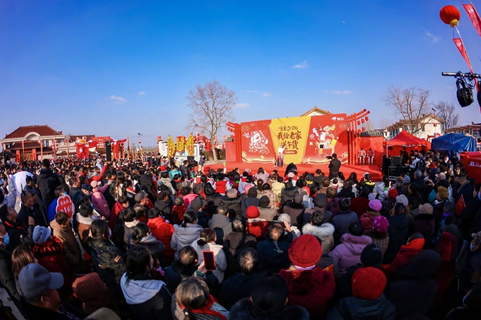 今日,刘强东为老家光明村举办的“村晚”十分热闹,现场围满了观众。不仅有传统舞狮燃场子,还有魔术、杂技、机器人跳舞等众多节目。