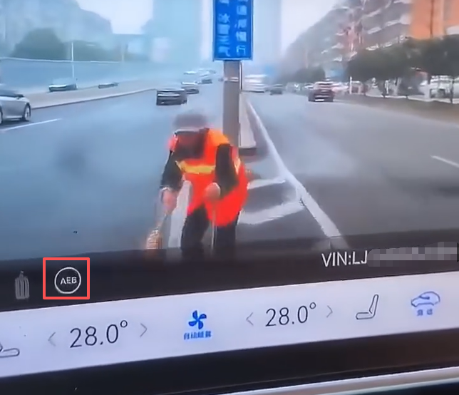 而此时,一位环卫工人正在导流线附近干活,可这车的智驾系统压根没识别出前方有人和障碍物,全程没明显减速,直直冲了过去,直到撞上前0.1秒才突然退出智驾模式。