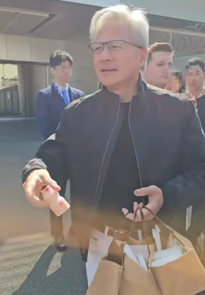据悉,黄仁勋下午1时18分左右走出商务中心大门,身穿黑色夹克和白长裤,面带笑容发养乐多与三明治给现场守候的媒体,并为粉丝签名,还提醒粉丝“不能将签名球拿去卖”。
