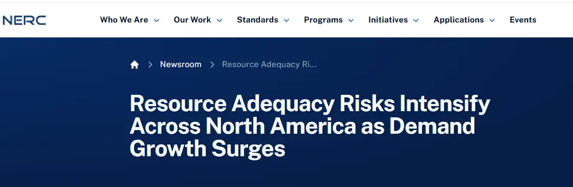 NERC在报告中指出,未来十年北美电力需求增长的主要驱动力,将来自支撑人工智能与数字经济的新建数据中心。