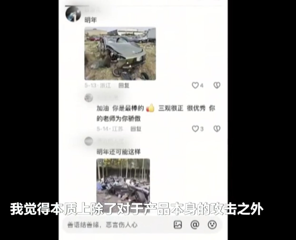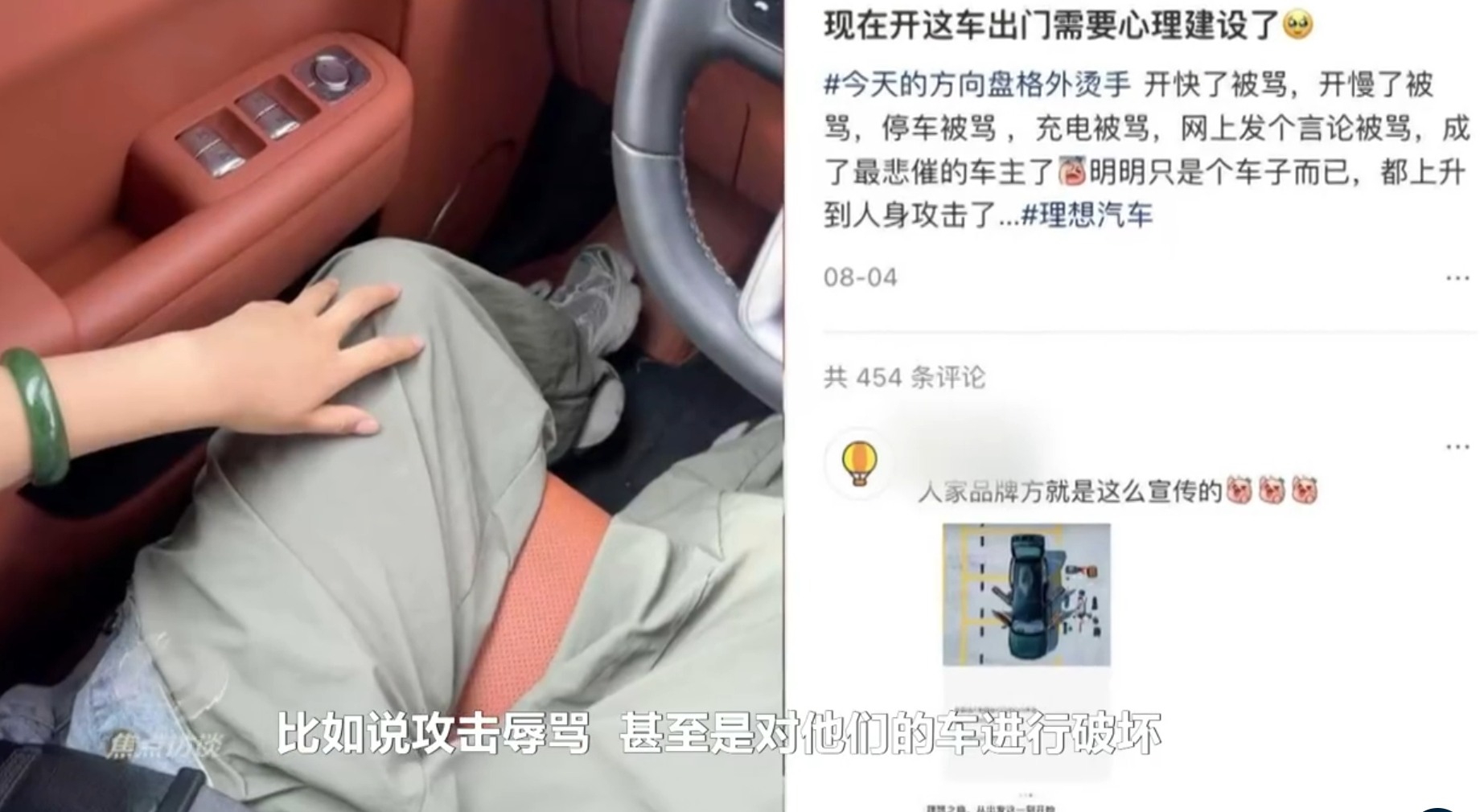 此外,网络黑手的攻击并不仅仅停留在车企和车型层面,为了达到抹黑目的,攻击构陷已经蔓延至普通车主。许多车主因为自己的购车选择被贴上标签,在线上甚至线下无端遭受到了网络攻击和拉踩,比如辱骂、划车、吐口水、扔垃圾。