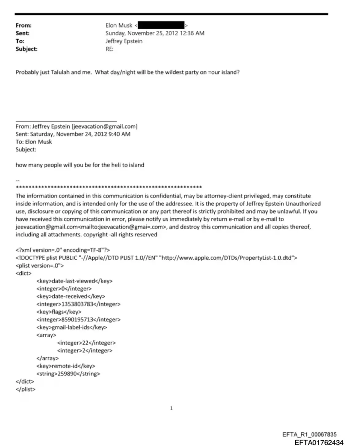 在双方就日程安排进行一番沟通后,马斯克似乎确认将于2014年1月2日拜访爱泼斯坦的岛屿。