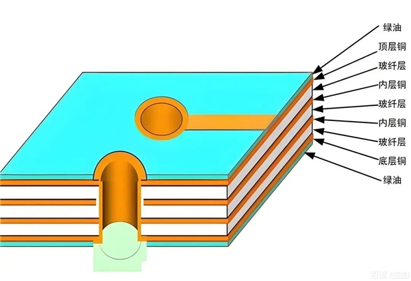 外面就是PCB会将不同线路覆盖的芯板,彼此之间进行压合而成,在不同的层与层之间,就需要用到玻纤进行分隔。
