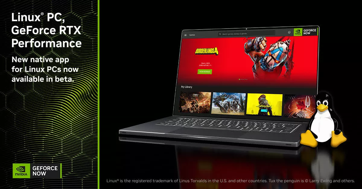 英伟达宣布,其云游戏服务 GeForce Now 正式登陆通用 Linux 桌面与笔记本平台,目前已推出官方原生客户端公测版。 该公司在几周前的 2026 年 CES 上首次对外透露这一计划,如今 Linux 用户无需再依赖浏览器或手持设备的变通方案,即可在本机系统中直接使用这一服务。