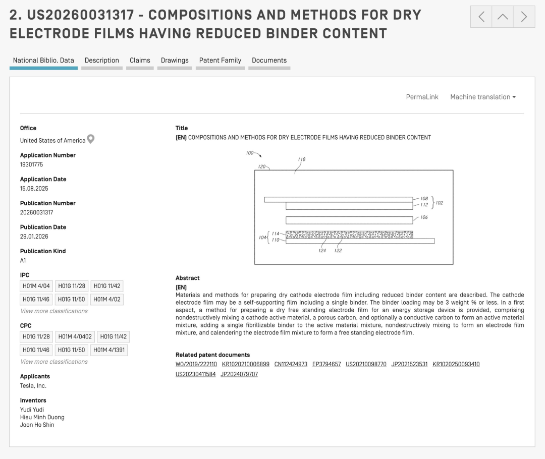 现在,特斯拉能以干电极工艺造4680,并且两个电极都是干式工艺,也意味着公司找到了新的解决方案。而其在今年1月29日发布的专利,恰好解答了这方面的疑问。