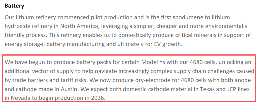 特斯拉还表示,美国得州的阴极材料产线、内华达州的磷酸铁锂电池产线,预计今年也会相继投产。