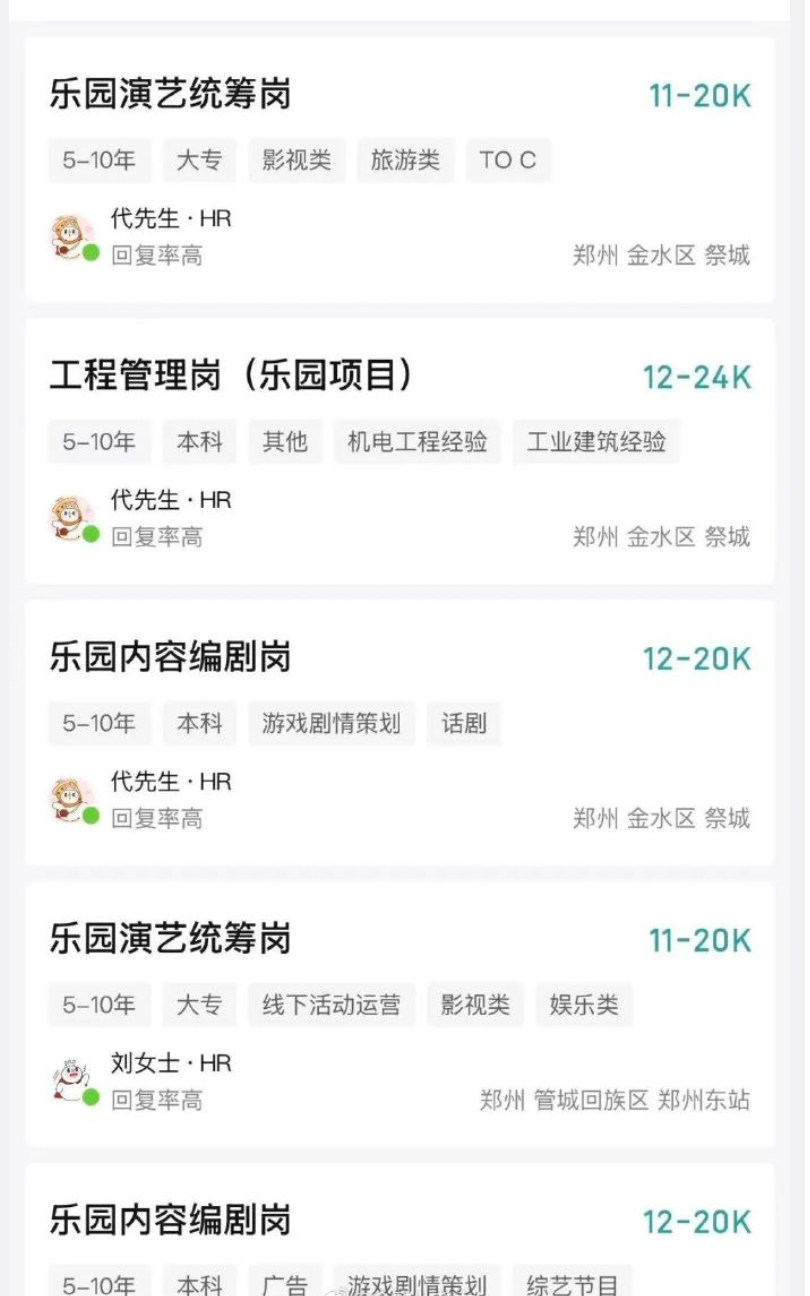 近日,BOSS直聘信息显示,蜜雪冰城上线了一批与“乐园项目”相关的招聘岗位。从具体招聘信息看到,本次招聘岗位其中包括乐园演艺统筹岗、乐园内容编剧岗、乐园项目工程管理岗、乐园周边产品统筹岗等,月薪在10k至24k之间。