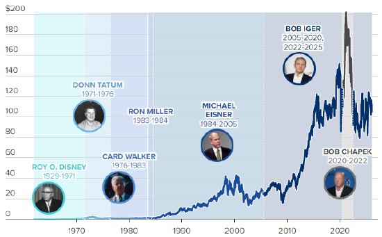 这位传奇首席执行官执掌迪士尼近20年,其任期分为两段。艾格的职业生涯始于迪士尼旗下美国广播公司(ABC),之后逐步晋升至迪士尼母公司管理层,首次担任首席执行官长达15年,直至2020年首次卸任。
