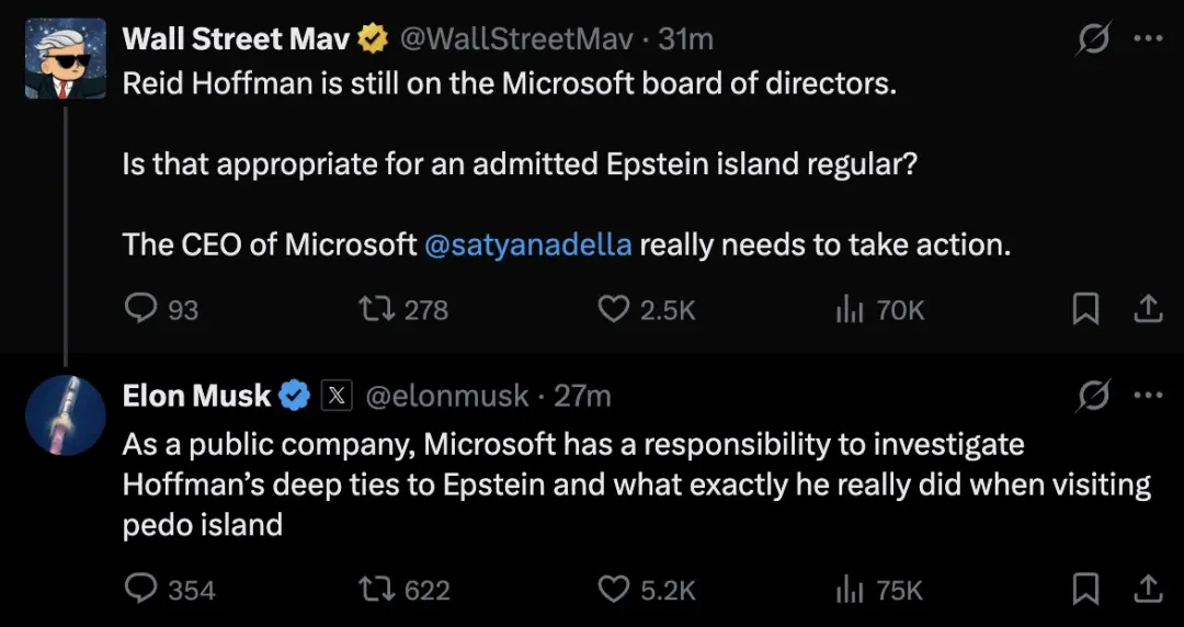 就在几天前,马斯克还在X上义正辞严地呼吁,应当起诉所有与爱泼斯坦有关联的犯罪者。