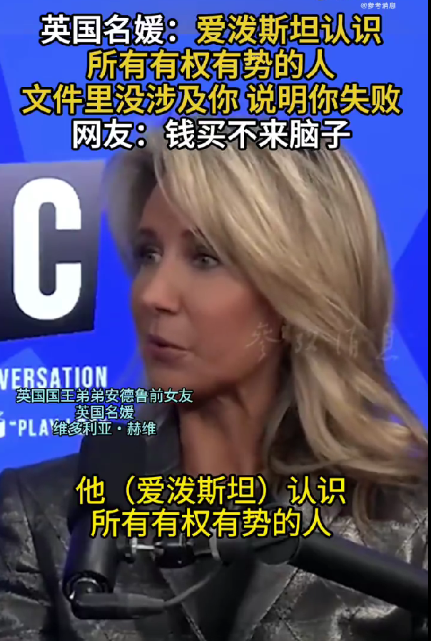 英国名媛:爱泼斯坦认识所有有权有势的人 文件里没你说明你很失败
