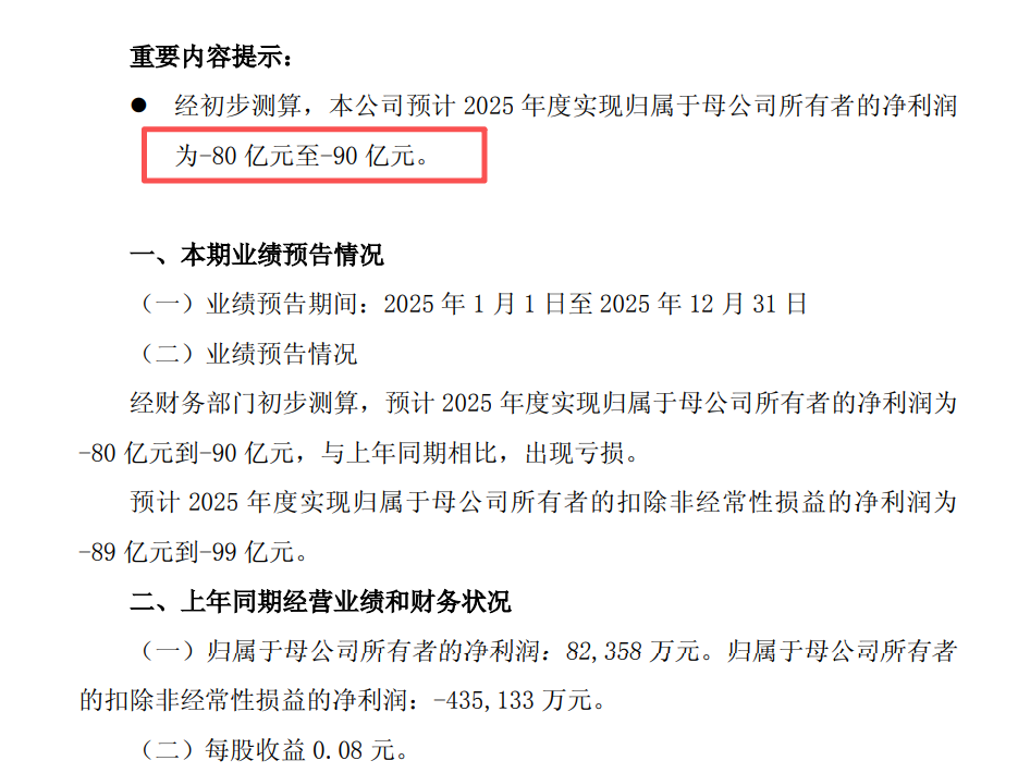 预亏最高90亿,创十年来最大跌幅