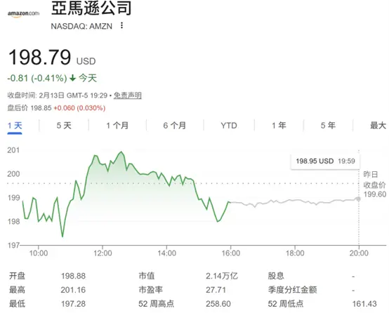 亚马逊股票目前正遭遇一场惨烈的抛售潮,因投资者对该科技巨头激进的人工智能(AI)支出计划感到担忧。周五,亚马逊股价下跌0.41%,报198.79美元,为连续第9日下跌,创下2006年7月以来最长的连跌纪录。在此期间股价累计大跌18.2%。