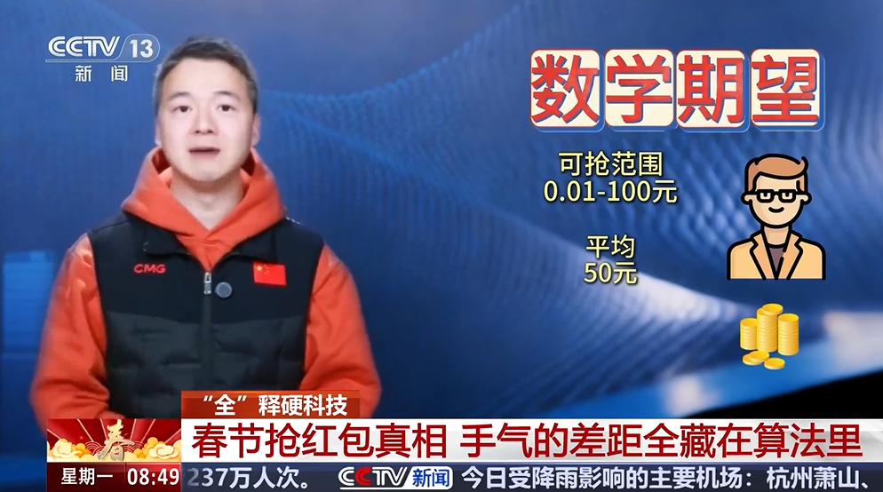 今日,央视新闻《全释硬科技》对抢红包背后的算法进行了揭秘。