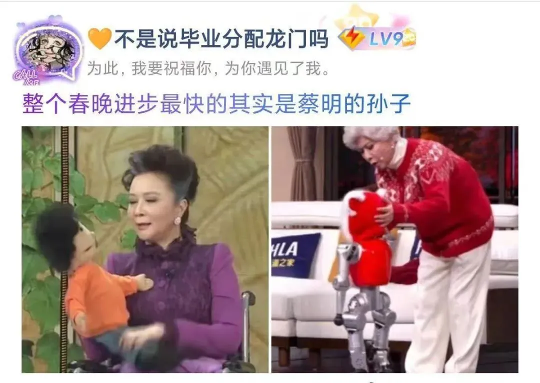 更妙的是,小品结尾的“两个蔡明”在某种程度上也是对 30 年前 1996 年春晚《机器人趣话》的一种回顾。