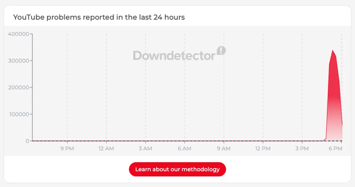 根据Downdetector的数据,在高峰期,美国有超过32万用户报告了YouTube的问题。