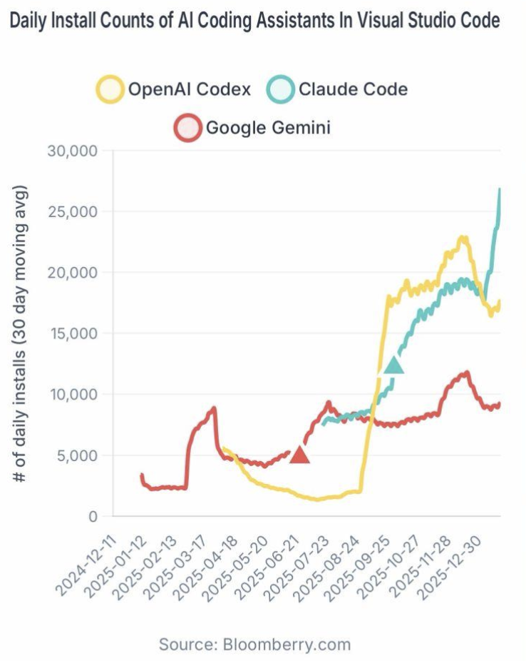 OpenAI拉响“红色警报”,并没有影响Claude在AI编程工具领域“曲棍球棒式”的增长曲线!