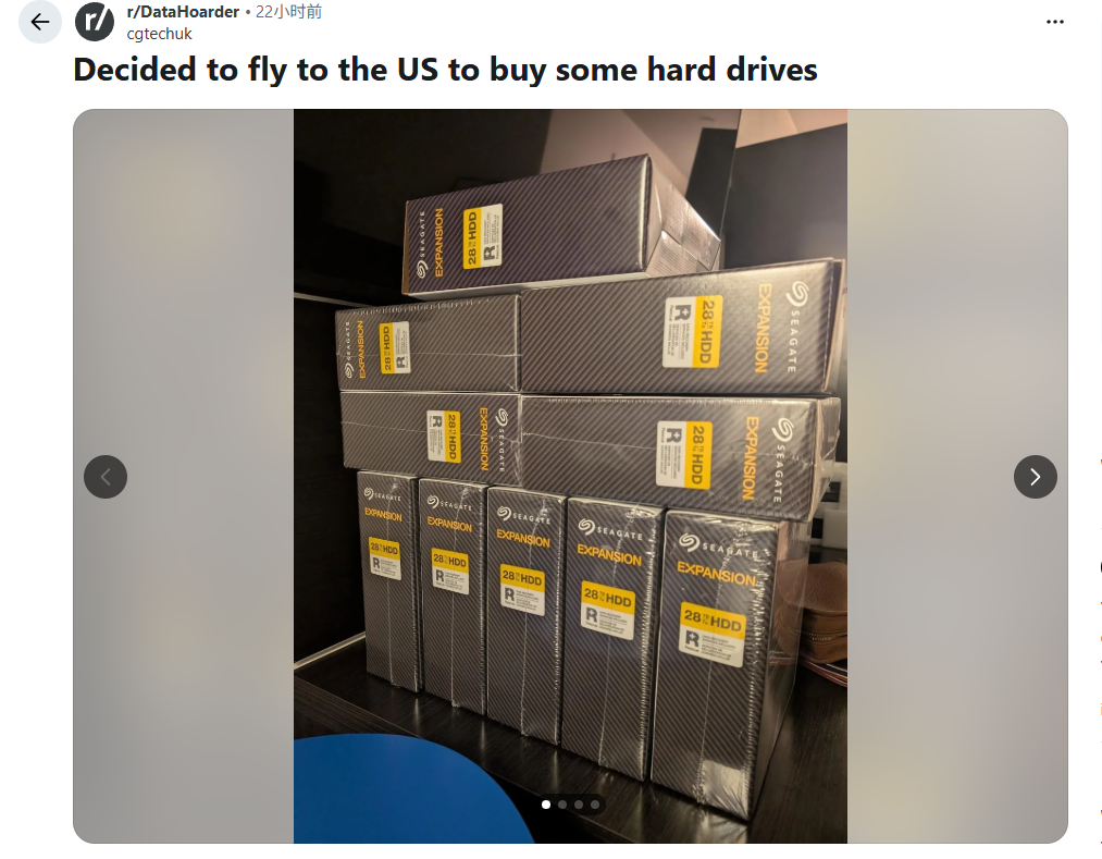 u/cgtechuk的经历走红后引发网友热议,有人感叹硬盘价格涨得夸张,也有人调侃这是最划算的跨洋旅行。