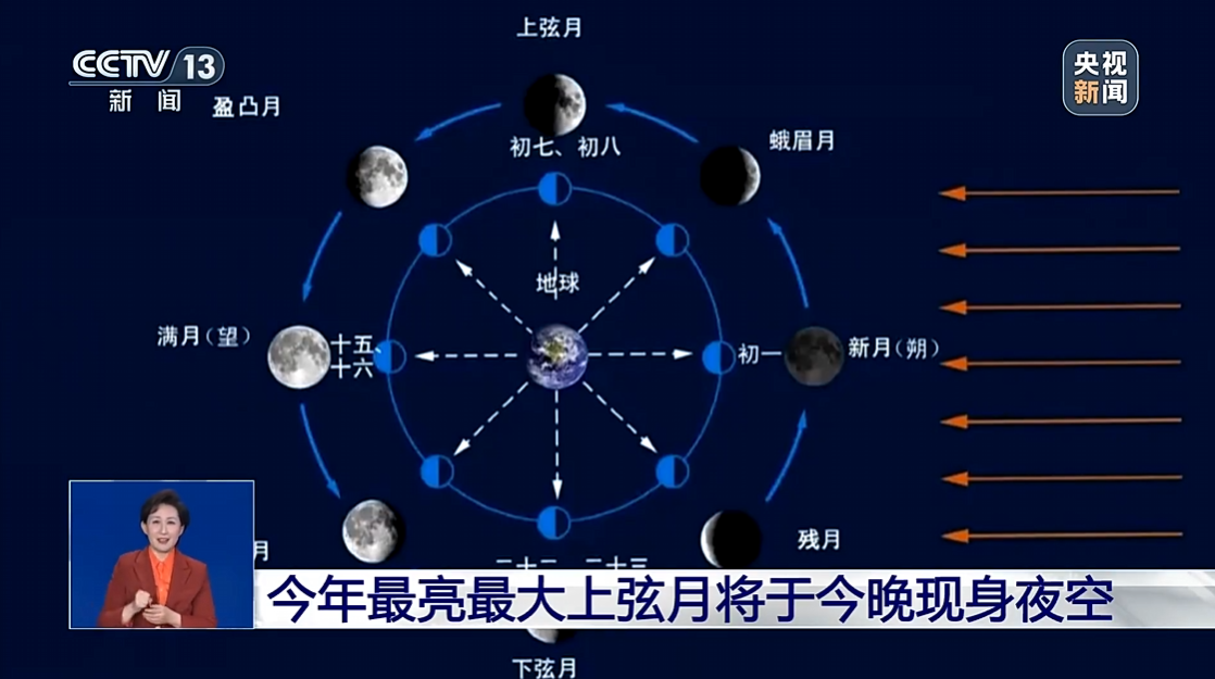 2026年全年将出现12次上弦月、13次下弦月,本次是其中最佳观瞻的一次。