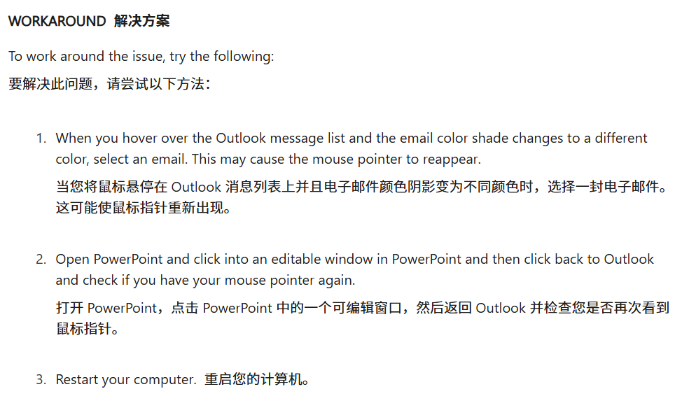 在正式补丁发布前,微软给出的临时解决方案堪称玄学,官方建议的第一种方法是在光标消失的状态下,盲点那些正在变色的邮件,这可能诱发光标重新显现。