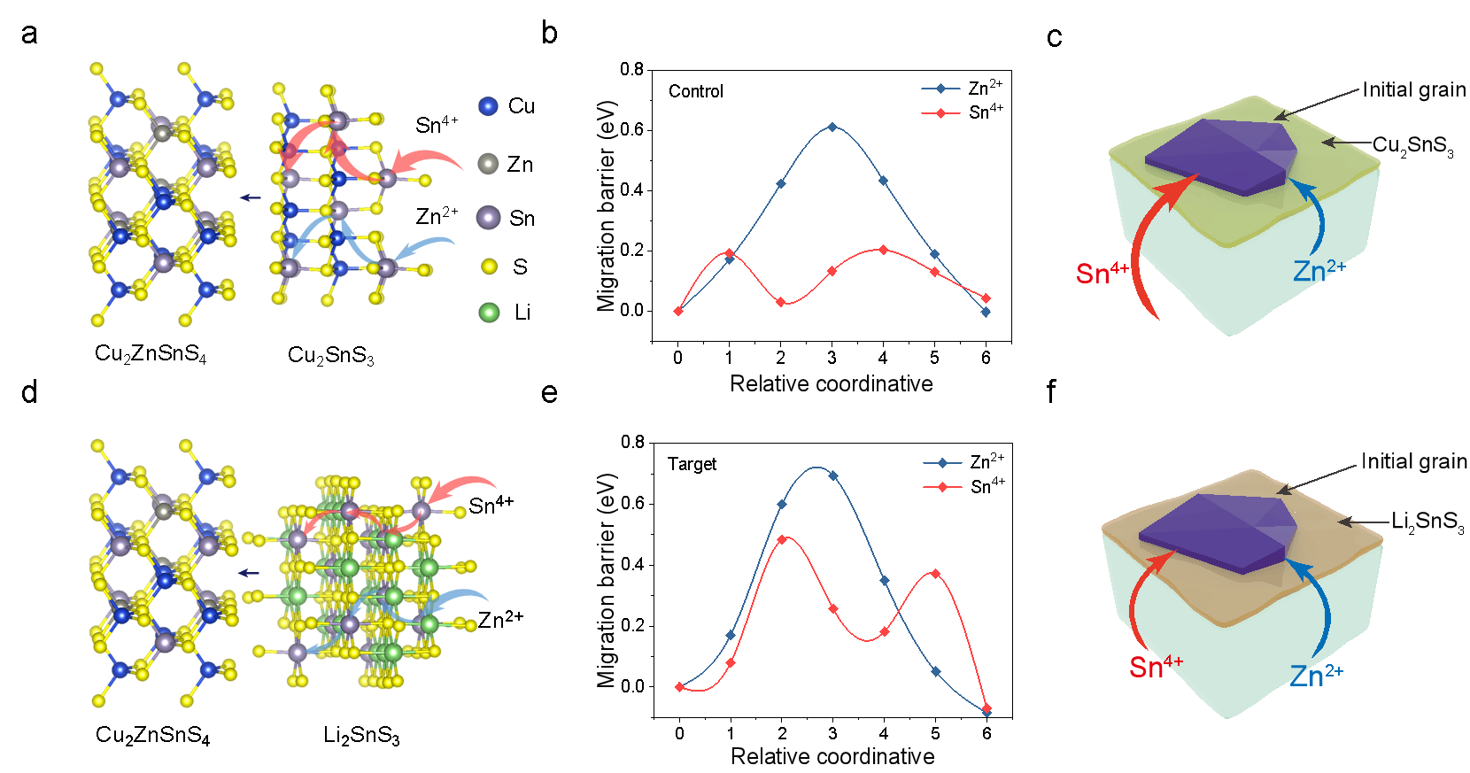 研究团队针对性提出创新解决方案,在材料内部引入Li₂SnS₃特殊“界面相”结构,该结构如同“交通指挥员”,能引导金属离子沿正确路线移动,平衡离子迁移差异,让晶体结构更均匀稳定,大幅减少材料内部缺陷,同时促进晶粒更大、更整齐地生长,从根本上提升电池发电能力。