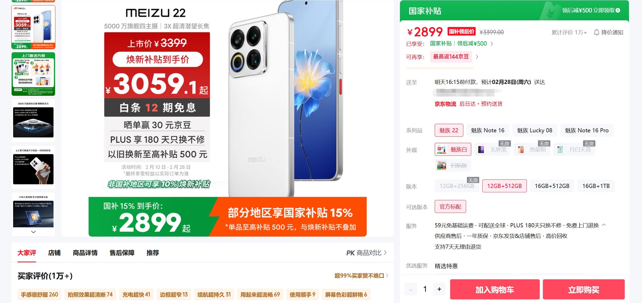 相比之下,魅族京东自营店目前仍有部分余货在售,涵盖了魅族22、魅族Note 16以及魅族Lucky 08系列。但由于库存有限,多款热门型号已陷入缺货状态。以魅族22为例,目前仅魅族白配色尚可下单,而无界黑、热爱粉、月白天青等主打色彩均已显示售罄。