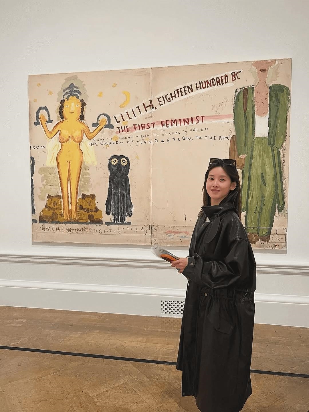 照片里的她正在参观英国皇家美术学院的艺术展,活力满满,笑容满面。