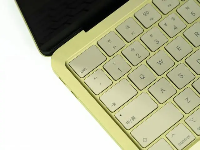 甚至还有个挺有意思的小设计 —— MacBook Neo 的键帽颜色是跟机身配色呼应的,比如蓝色机身对应的就是浅蓝色键盘,绿色机身就是浅绿色键盘,这让它在视觉上看着还挺高级。