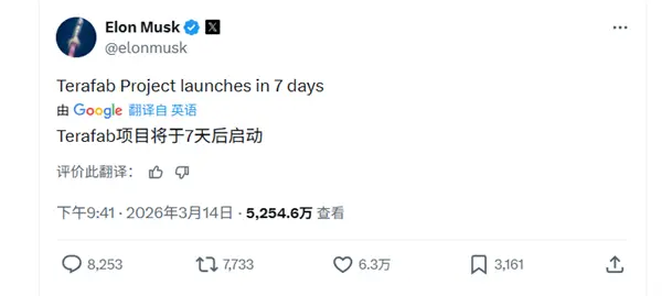 日前,特斯拉CEO埃隆・马斯克直接发推官宣,特斯拉筹备的TeraFab万亿级芯片厂,将在7天后正式启动。这座被他寄予厚望的晶圆厂,野心直接拉满,年产1000亿到2000亿颗芯片,目标就是超越台积电台湾地区的产能,成为全球最大的晶圆厂之一。
