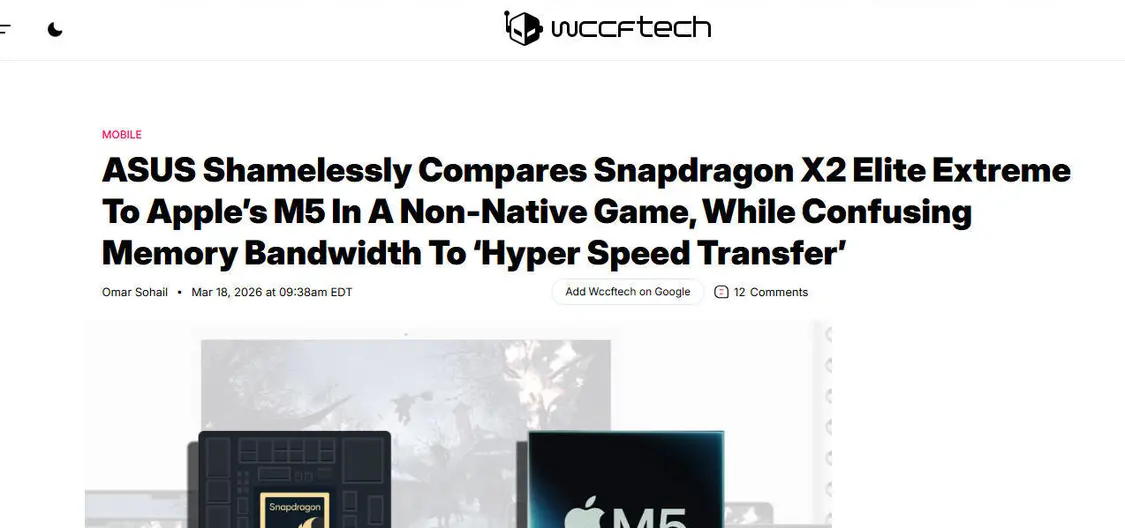 用非原生游戏跑分且偷换内存概念 华硕新品拉踩苹果M5被指“吃相难看”
