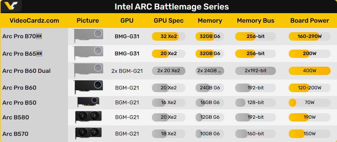 Intel全新的BGM-G31显卡此前已经多次传出相关消息,但确一直没有确切的发布日期,如今终于有了确切消息。据VideoCardz爆料,Intel已向媒体发出新闻稿,确认将于3月25日发布Arc Pro B70与B65两款显卡,基于Battlemage BGM-G31 GPU,定位工作站市场。