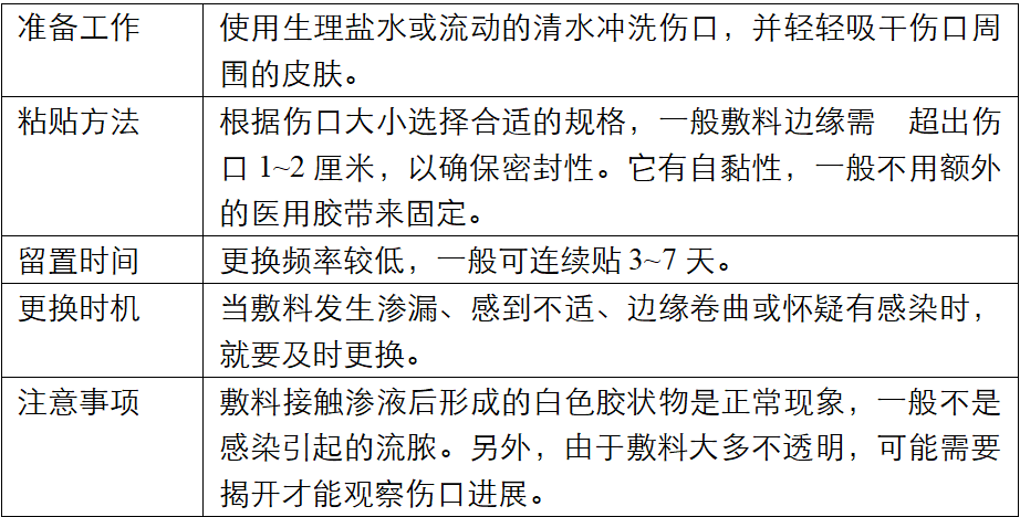 水胶体敷贴和传统的纱布、绷带等不同,使用时需注意下面几点: