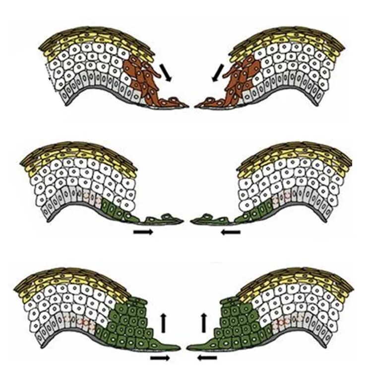 图1. 伤口再上皮化的示意图:箭头显示的是上皮生长的方向(来自参考资料)