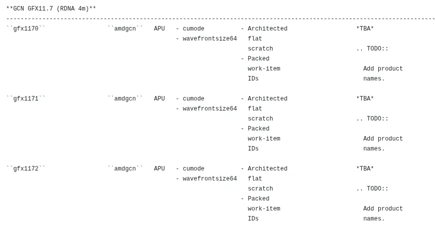 AMD在开源图形栈的LLVM编译器中,新增了两个全新RDNA 4m图形目标GFX1171和GFX1172。这两款与此前发现的GFX1170组成三款型号,均归属RDNA 4m标签下,且指令集能力完全一致,确认AMD正在为下一代APU准备多规格的集成GPU方案。
