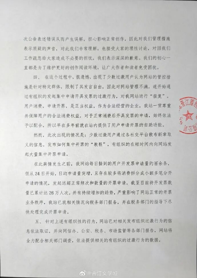 近日,国内知名文学平台晋江文学城因内容审核标准问题陷入舆论漩涡,并因此引发了一场大规模的用户“发票抗议”。