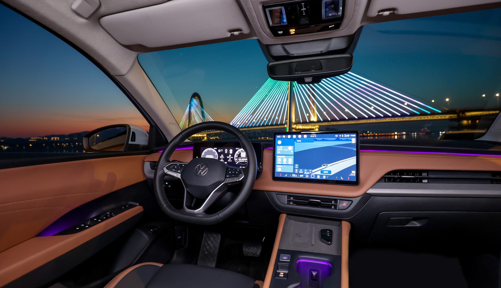 车内以实用为主,采用环抱式座舱布局,双拼配色搭配大面积软质包覆,配备了30色内饰氛围灯,提升座舱质感。