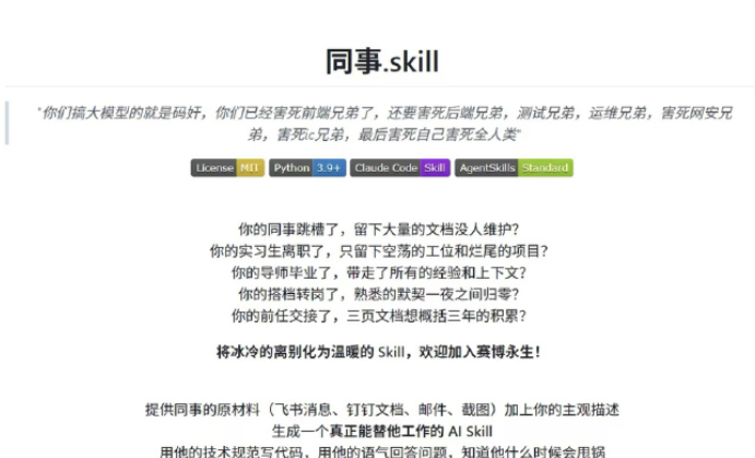 近日,有网友在 GitHub 上发现一款名为 “colleague-skill” 的开源项目,可实现同事赛博永生—— 通过整合离职员工遗留的工作文档、聊天记录等数据,喂给 AI 训练出可承接部分工作的数字分身。
