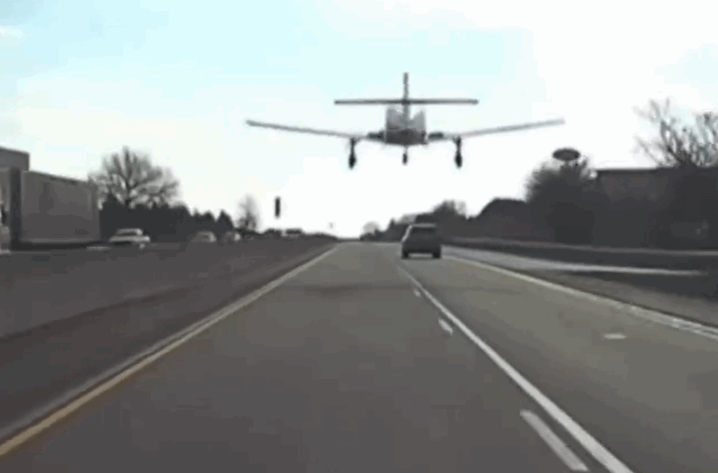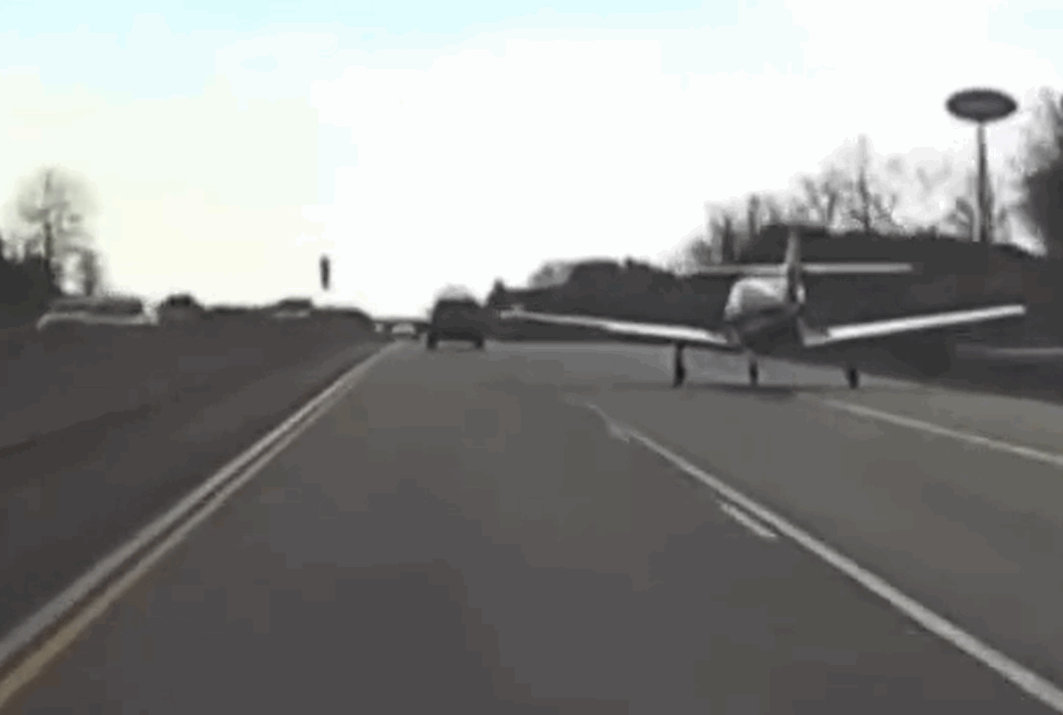 现实版GTA 美国一架飞机在公路上紧急迫降 后车拍下惊险全程