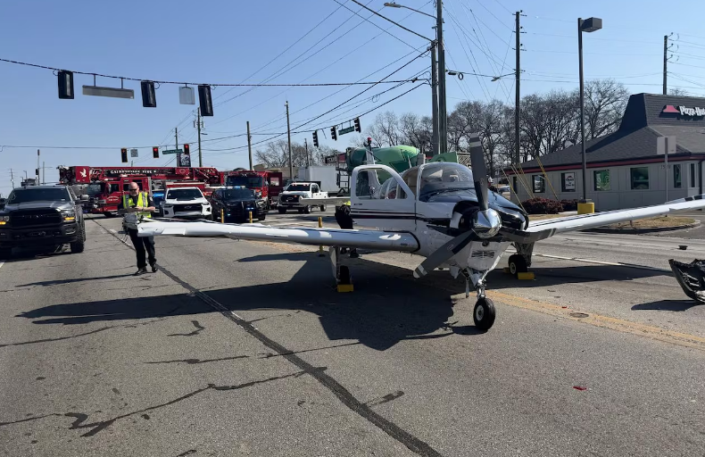 今年2月9日时,佐治亚州盖恩斯维尔市,一架2010年产比奇霍克G-36,因为发动机出现问题,在公路上迫降。