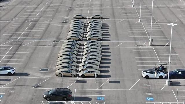得州工厂的知名无人机博主乔·泰格迈尔,在X上曝光了一些照片:约60台Cybercab量产版分两列齐刷刷停在得州超级工厂的出厂待运区,部分车内还能看到白色座椅,基本坐实了特斯拉Cybercab量产启动的消息。