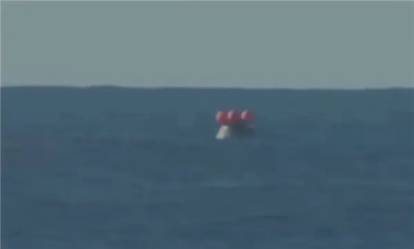 溅落足足50分钟后,搜救小队乘坐皮筏艇抵达返回舱旁,并打开了舱门。